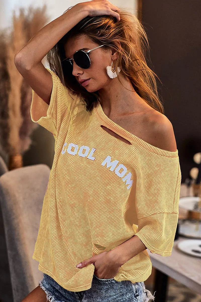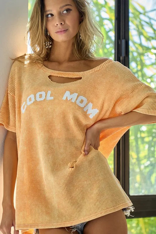 The Washed Laser Cut Detail Cool Mom Print Thermal Top is a stylish and comfortable choice for moms on the go. The laser cut details add a chic touch to the washed fabric. With a "Cool Mom" print, this top is perfect for showing off your mom pride in a fashionable way.