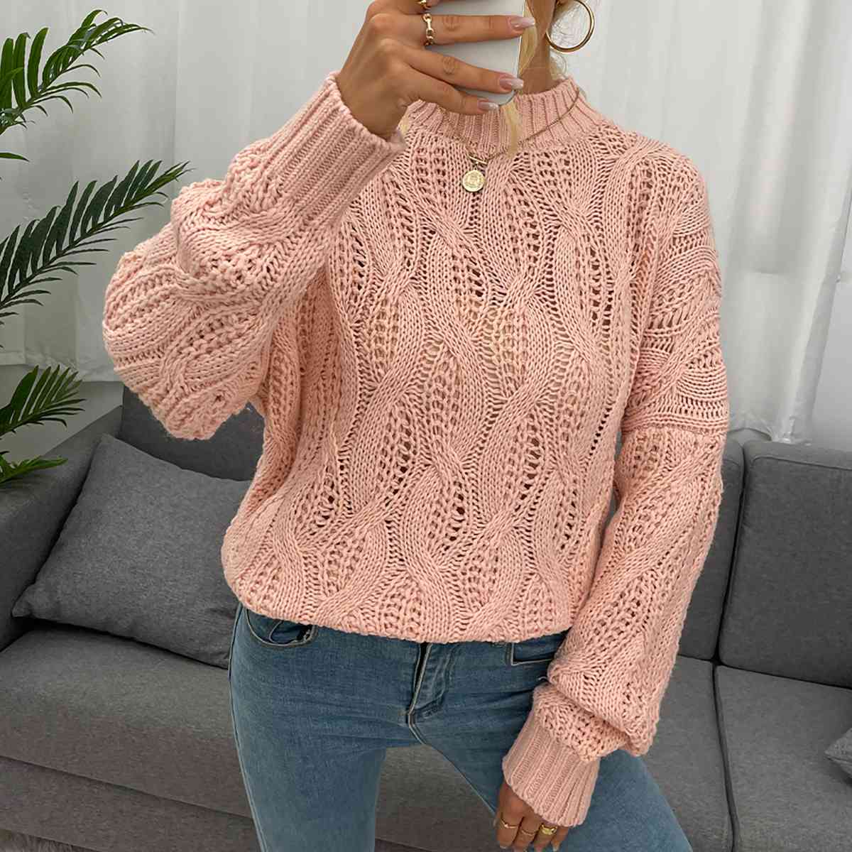Cable-Knit Mock Neck Long Sleeve Sweater