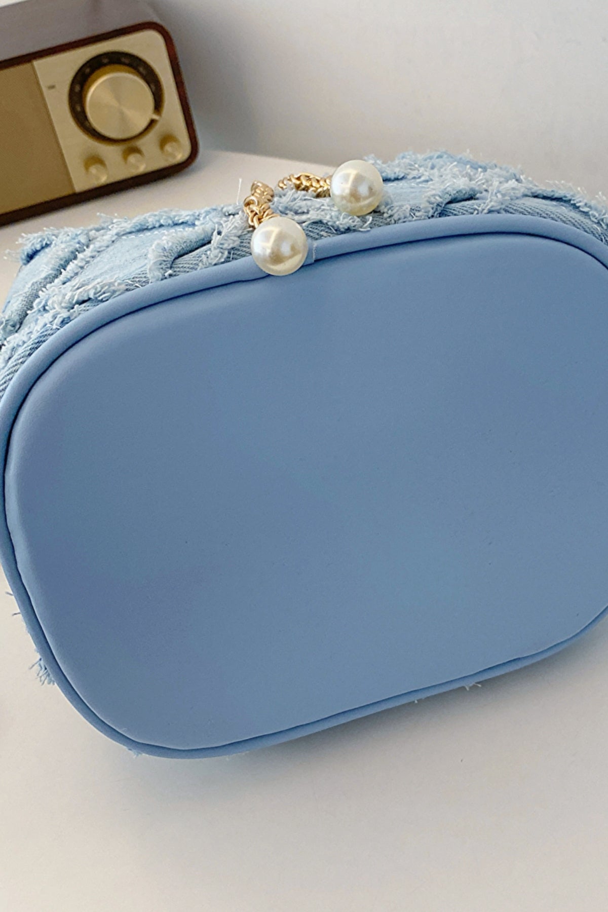 Chain Drawstring Raw Edge Denim Bucket Bag