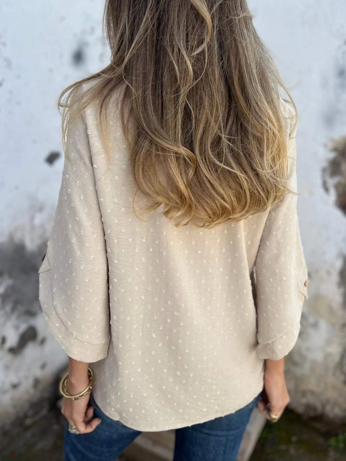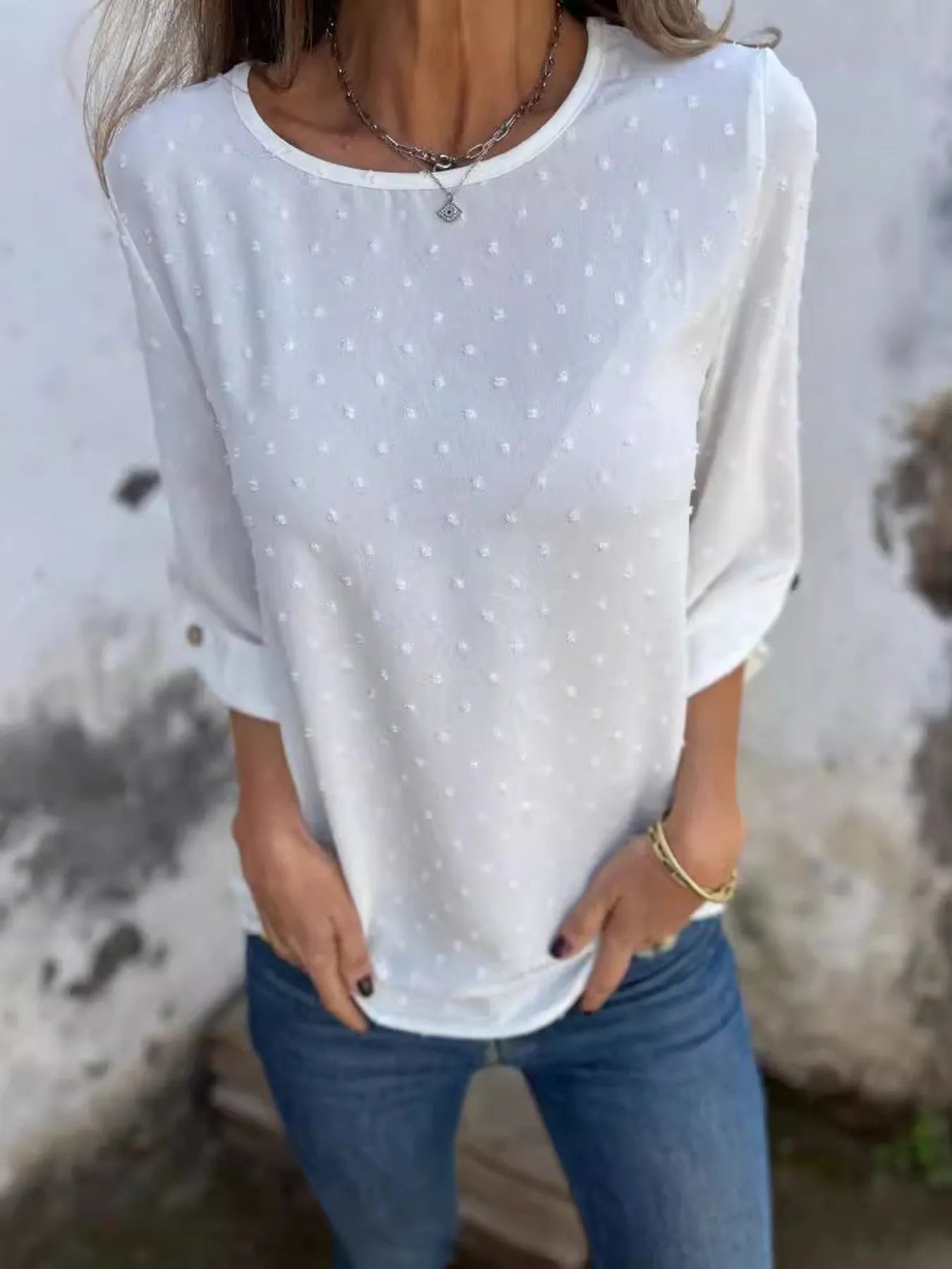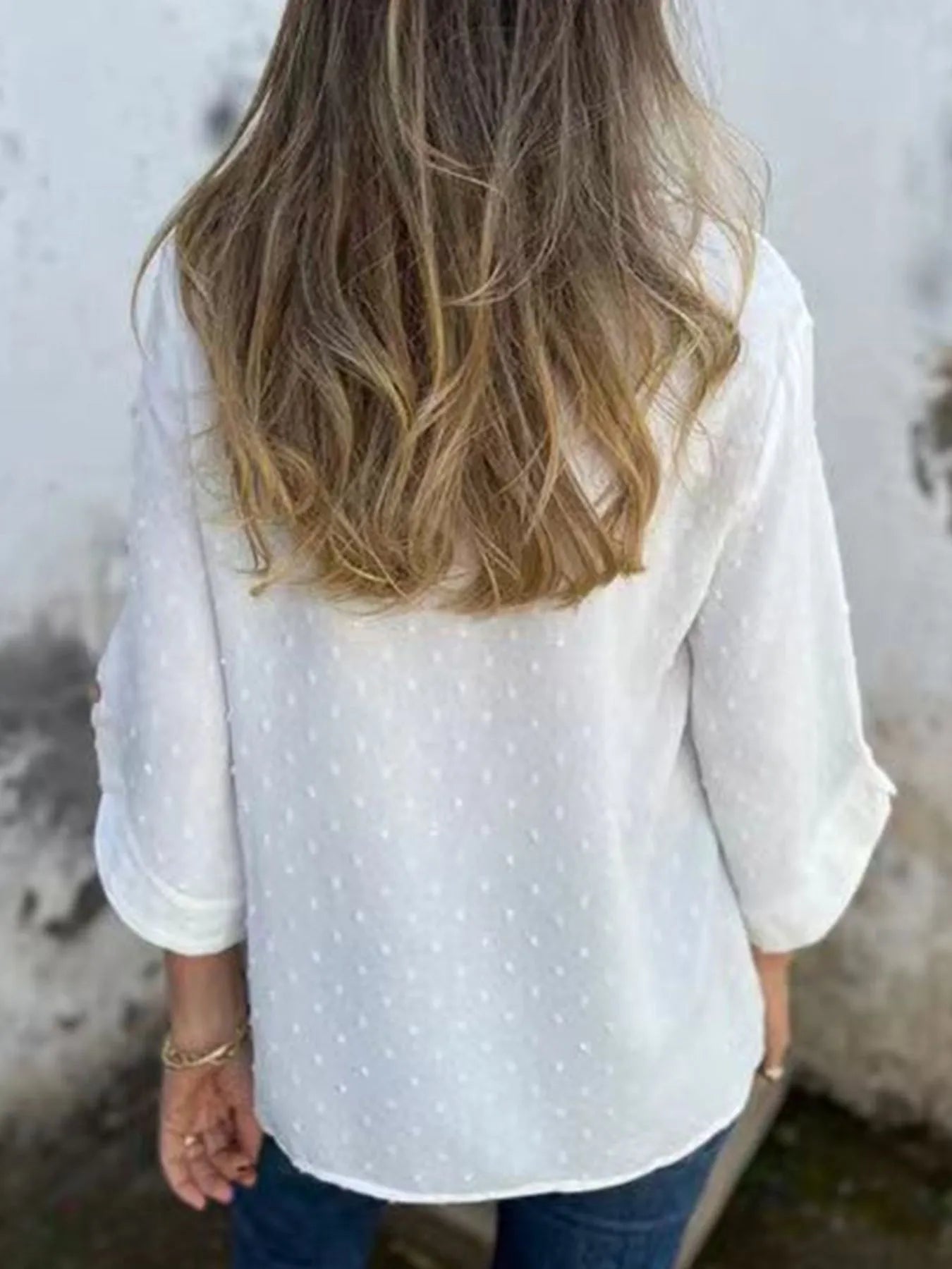Full Size Swiss Dot Textured Roll-Sleeve Blouse Full Size
