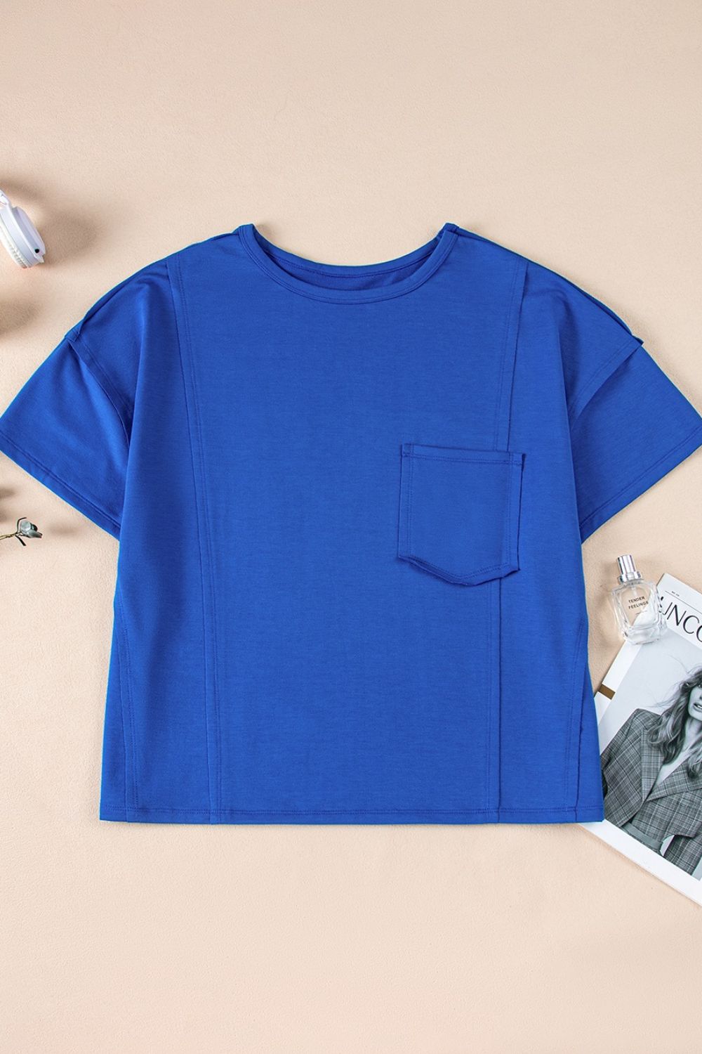 Patched Pocket Exposed Seam Oversize T-shirt