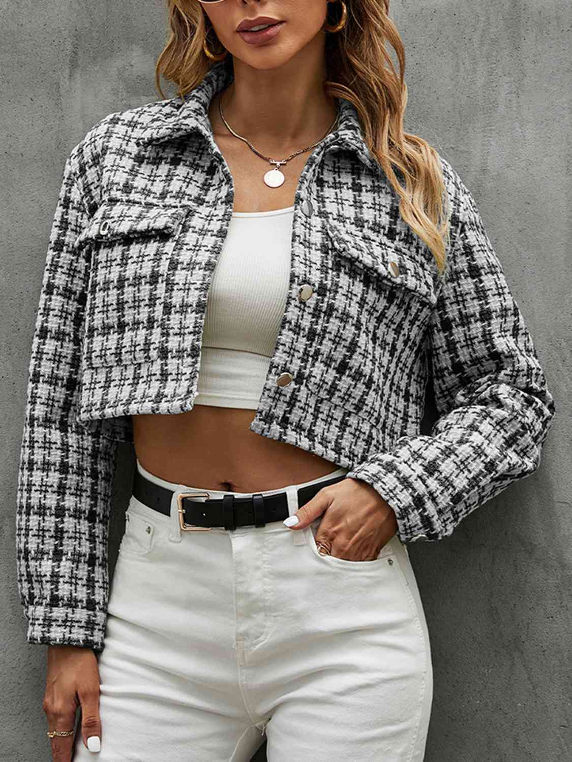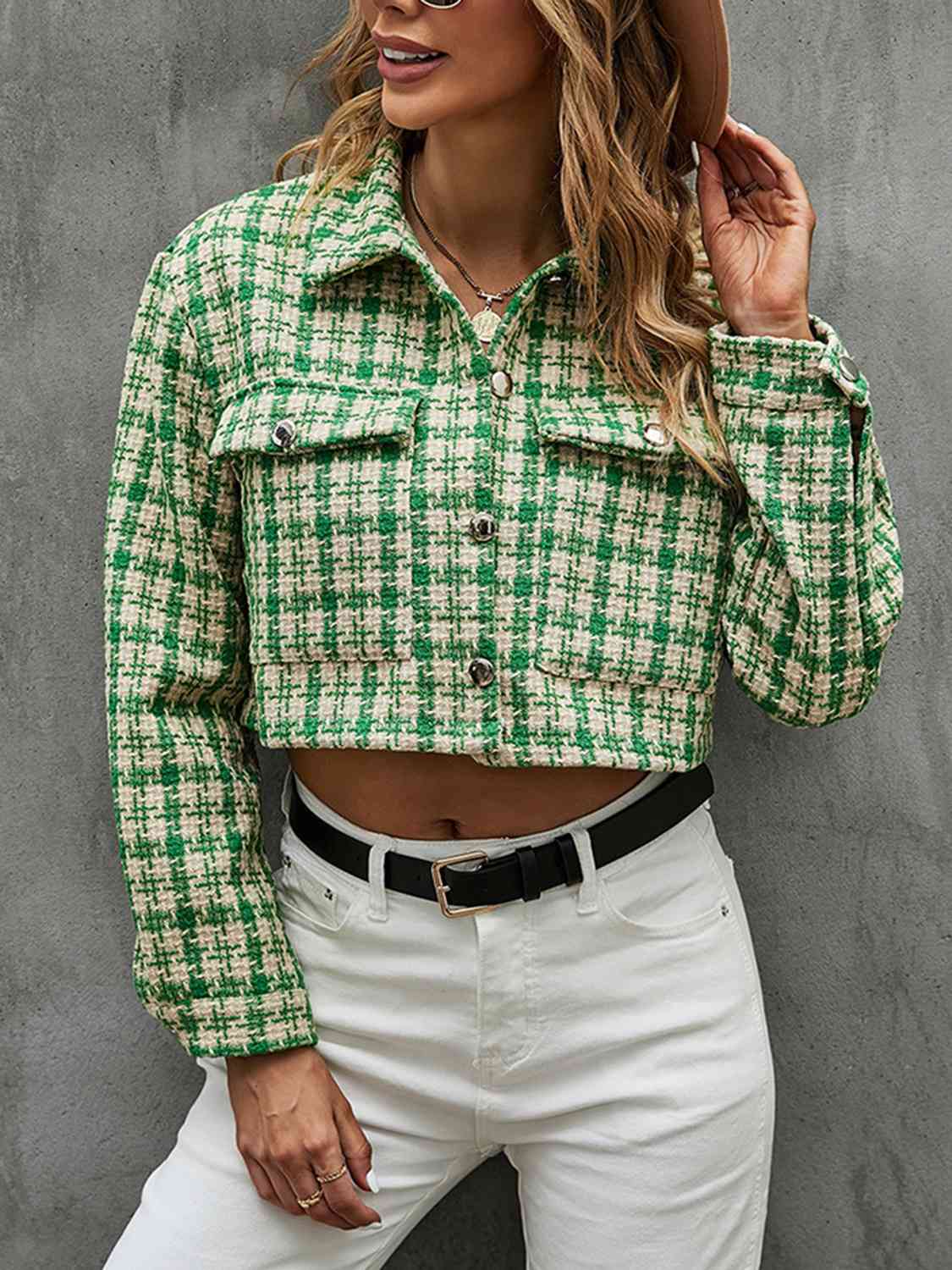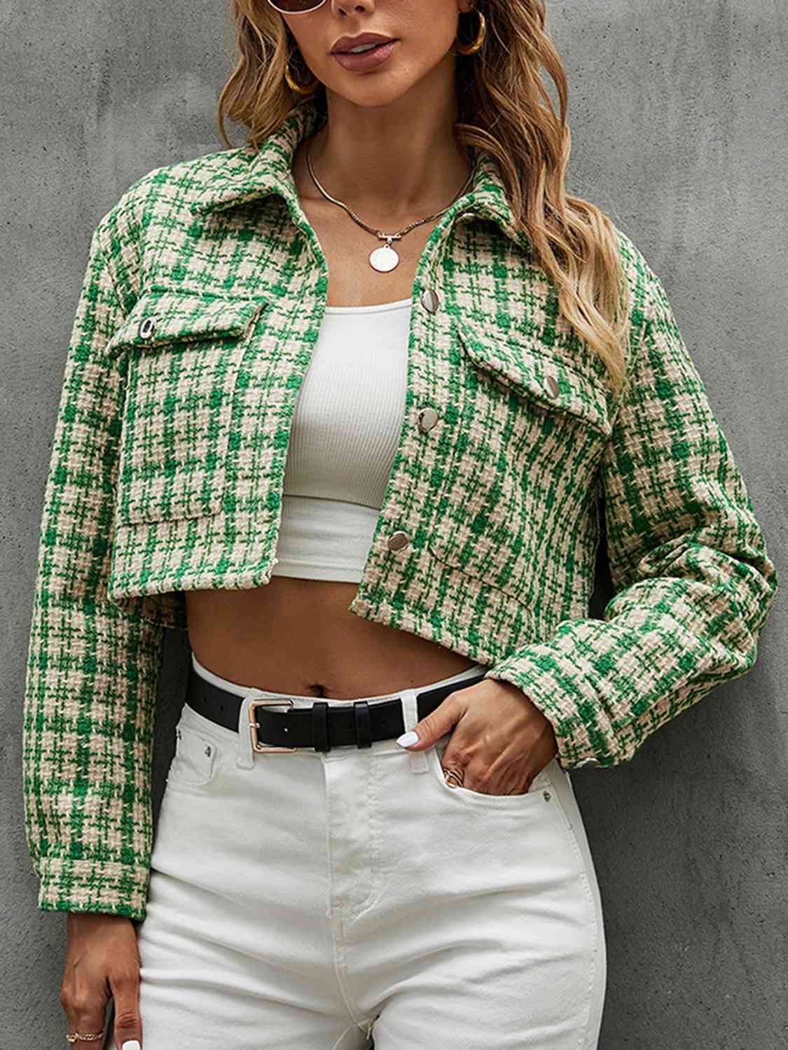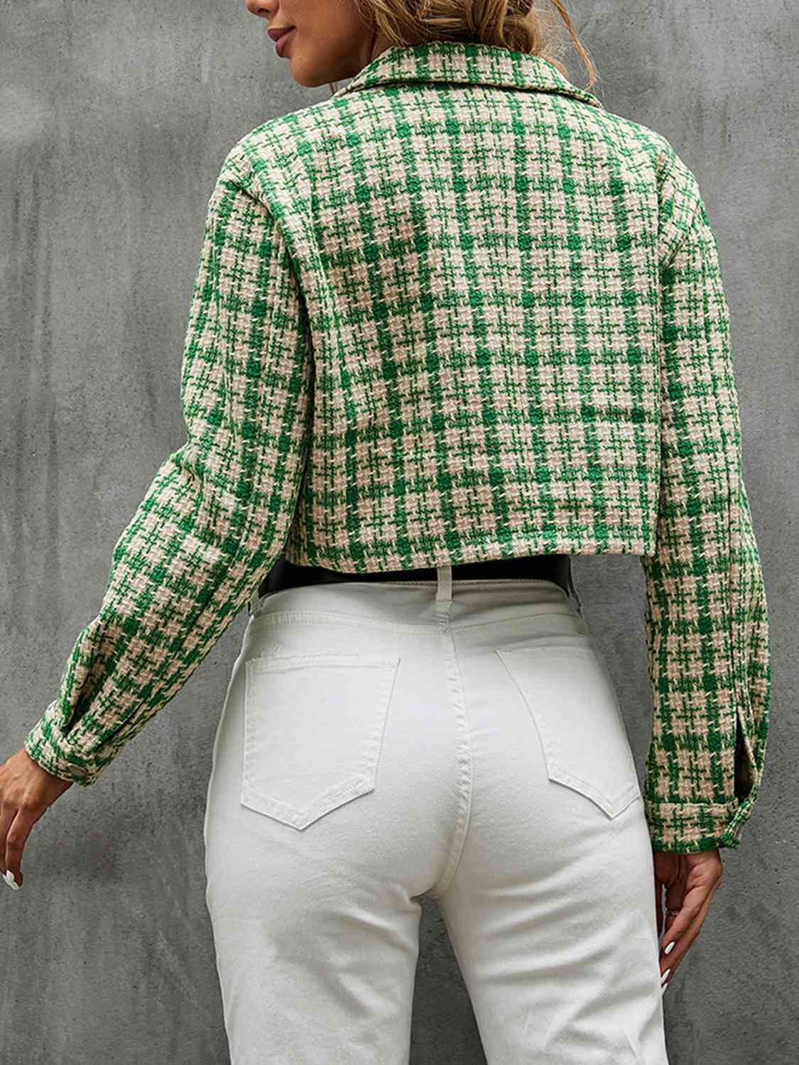 Plaid Button Up Collared Neck Long Sleeve Jacket