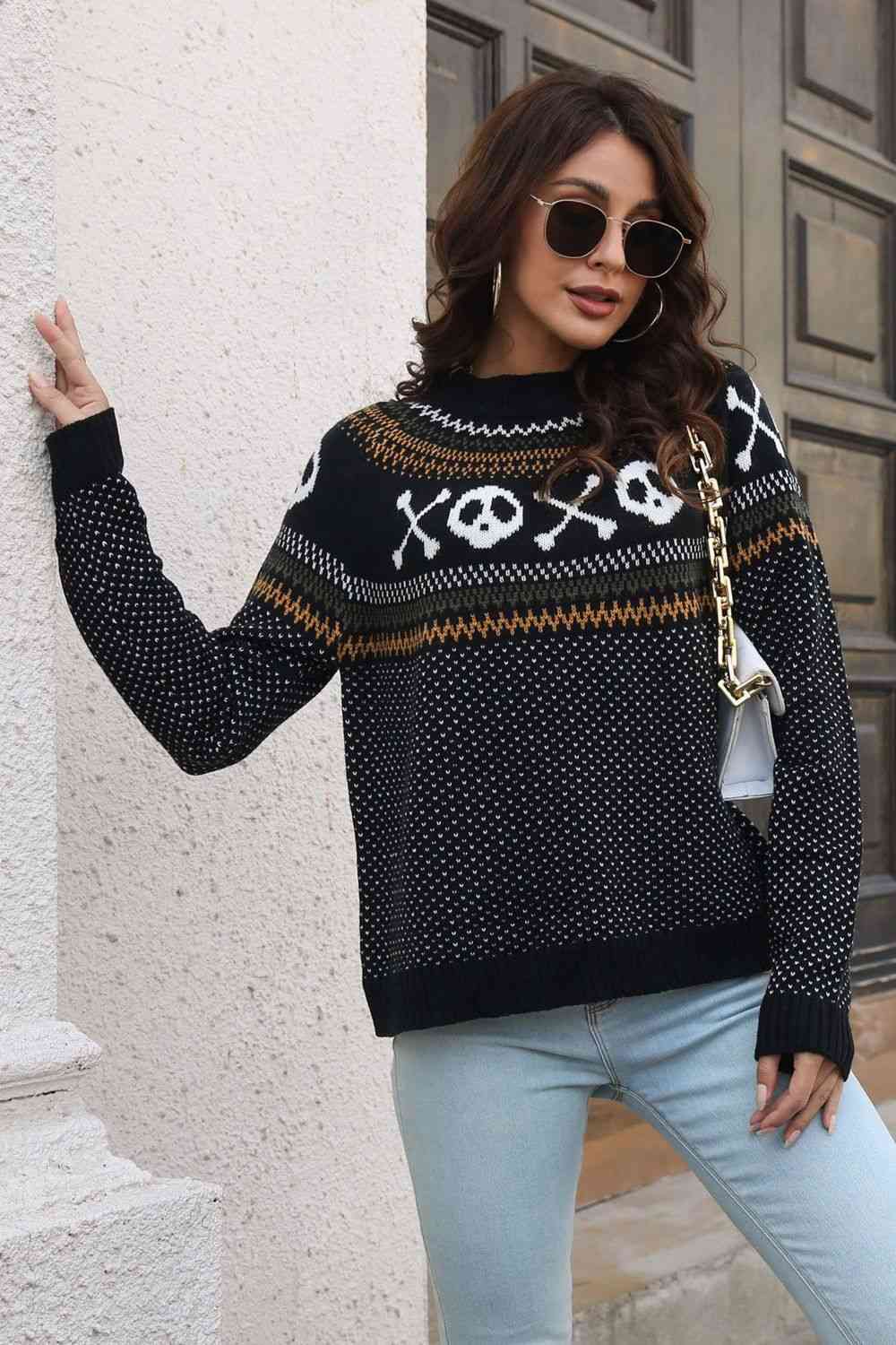 Ribbed Round Neck Long Sleeve Pullover Sweater