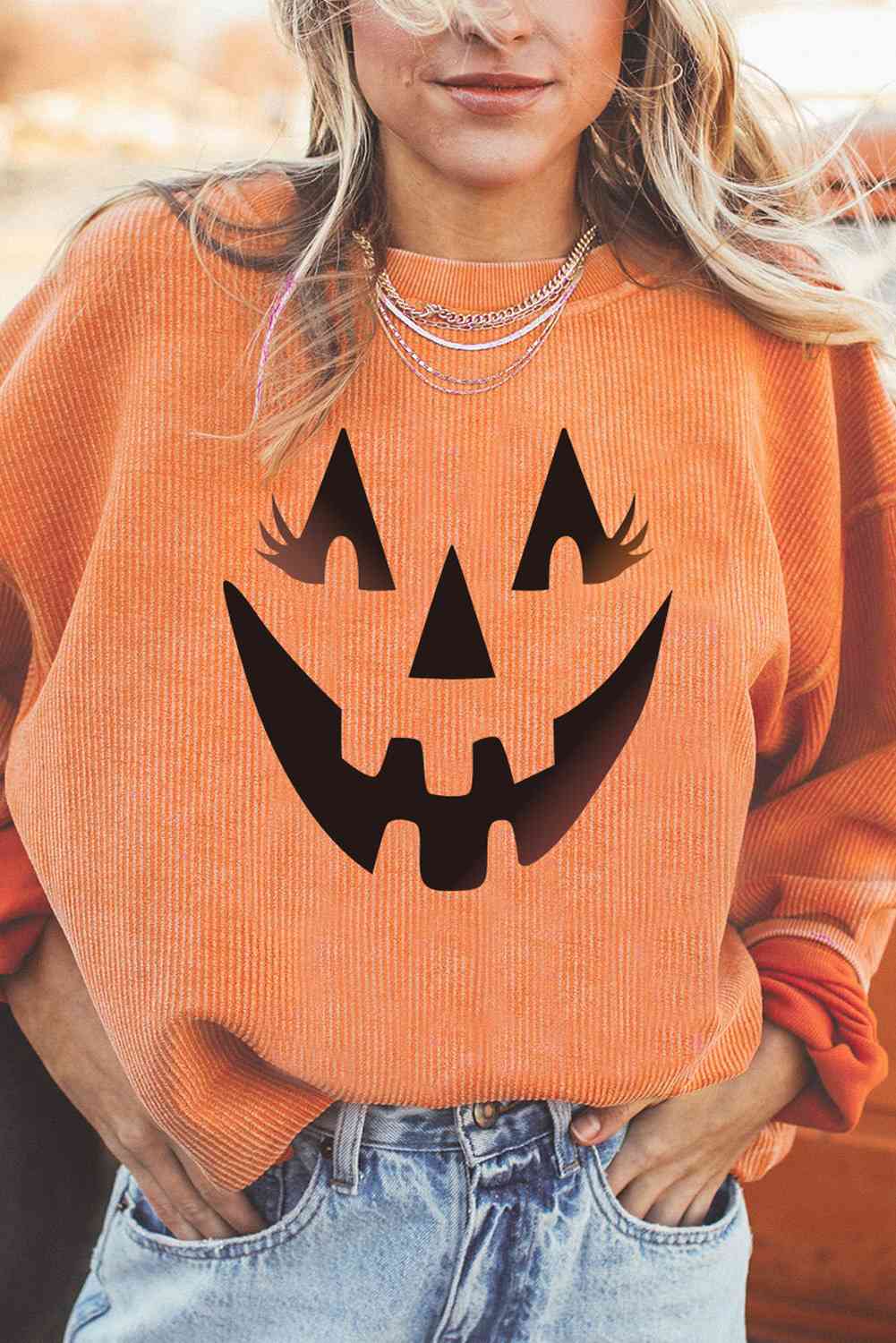 Round Neck Dropped Shoulder Jack-O'-Lantern Graphic Sweatshirt