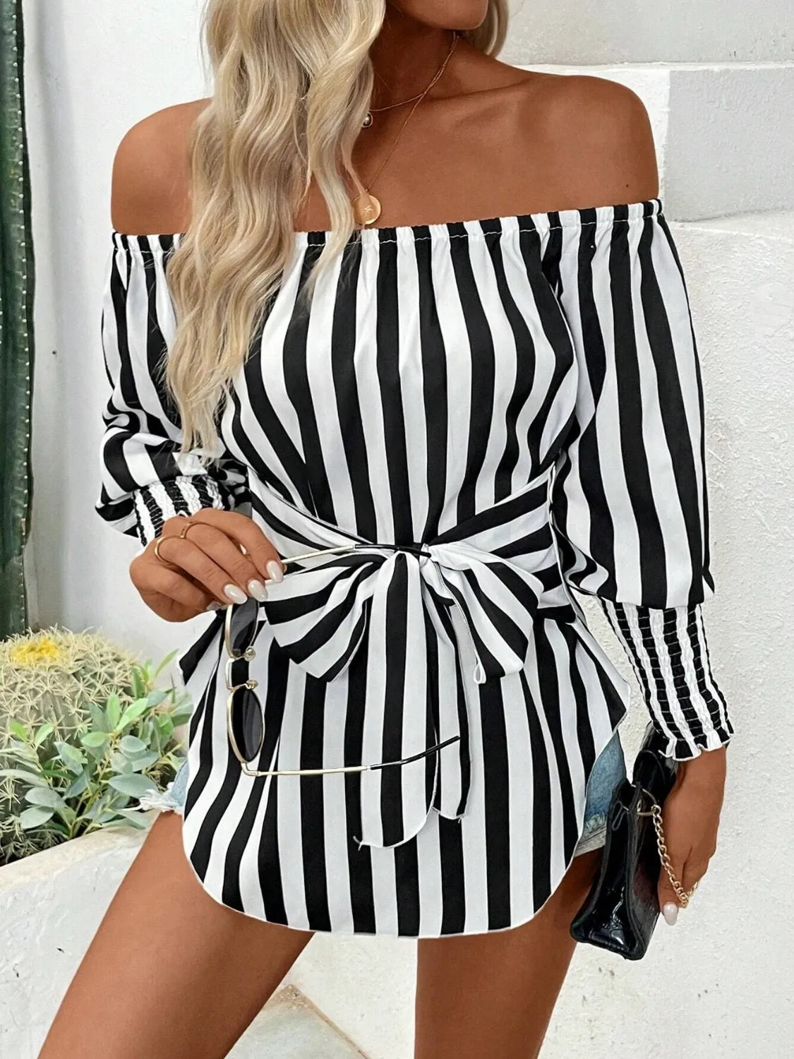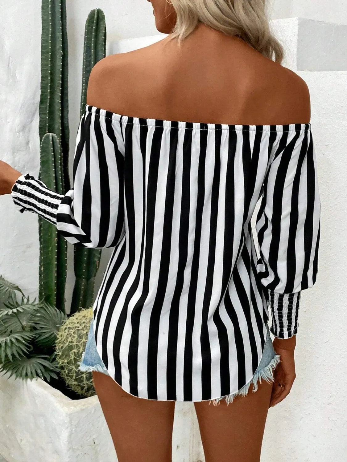 Striped Off-Shoulder Long Sleeve Blouse